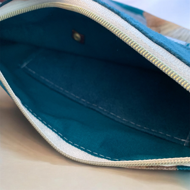 À l’intérieur, une petite poche plaquée permet de glisser une ou plusieurs cartes.