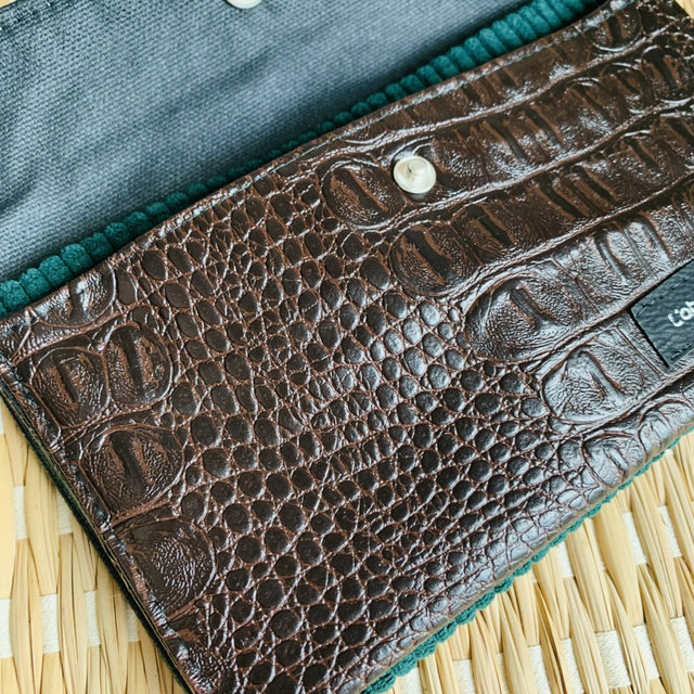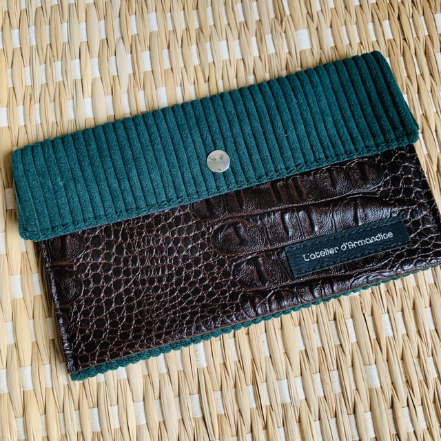 couleurs: similicuir coloris marron et velours côtelé vert foncé