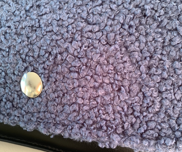 Un modèle plein de charme, qui associe un tissu bouclette cocooning à un simili cuir noir lisse.